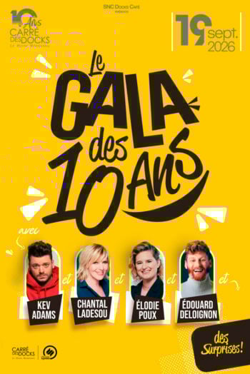 Pour marquer cette décennie, place à une soirée exceptionnelle : un gala d’humour réunissant des artistes que nous aimons, qui se produiront pour la première fois au Carré des Docks, ou qui y ont déjà triomphé… Et pas d’anniversaire sans son lot de surprises !